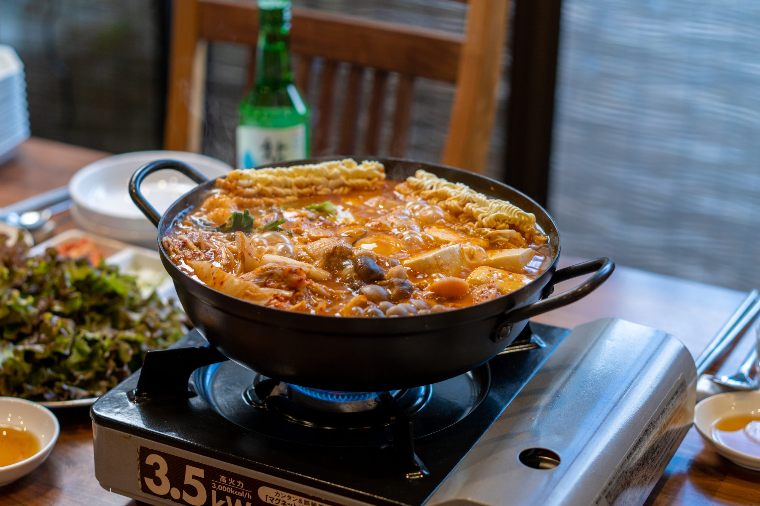 当店の特製スープで頂くチゲはお客様にご好評いただいております。